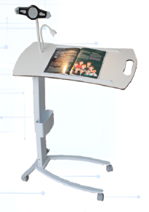 MESA COM REGULAGEM DE ALTURA, TAMPO EM MATERIAL TS E BASE PADRÃO
